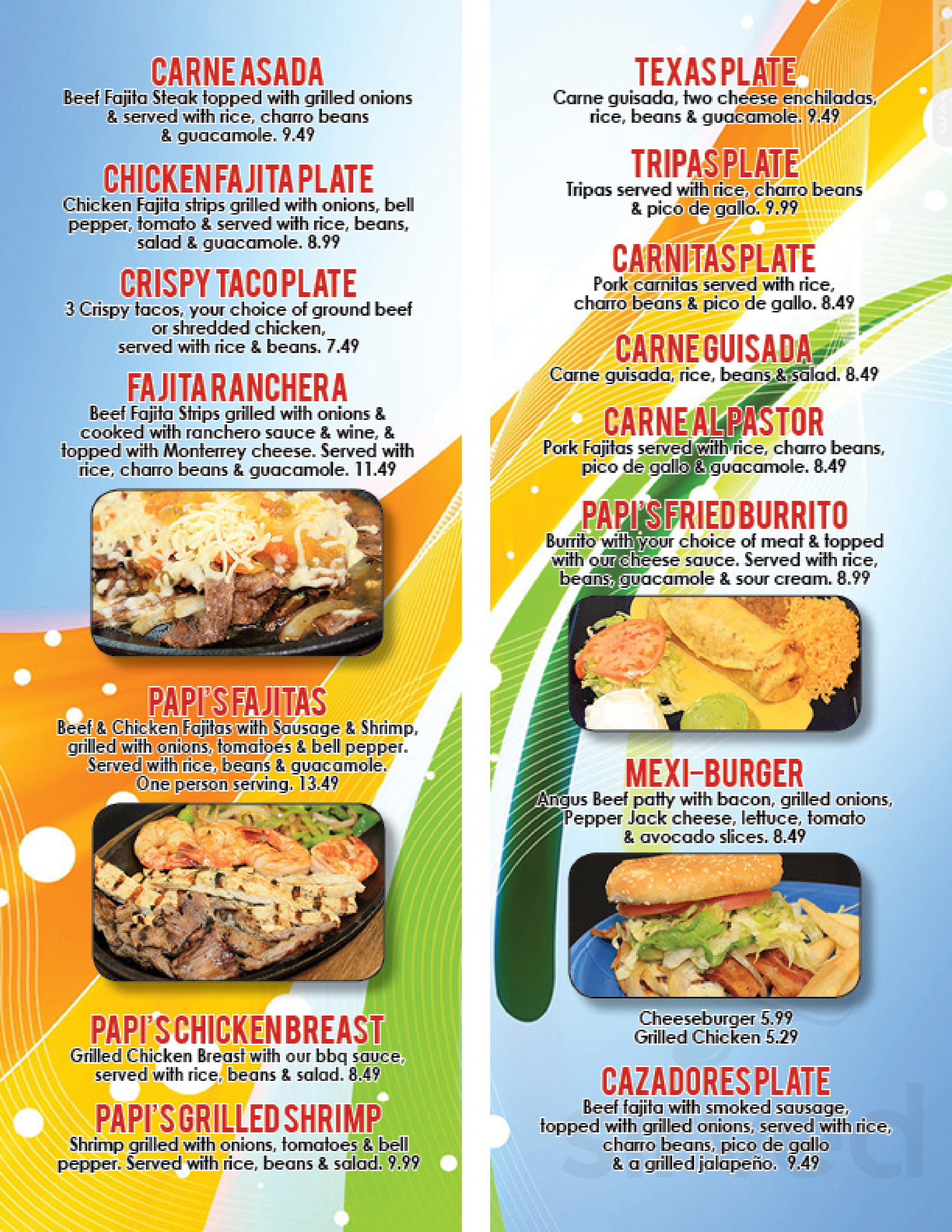 Papi Chulo S Mexican Restaurant Menu In Corpus Christi Texas Usa